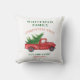 Almofada Feriado de Natal de Caminhão Vermelho com Aquarela