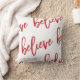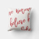 Os modernos recursos de travesseiro de feriado do programa de crença em vermelho acreditam em um script vermelho em um fundo branco.