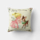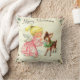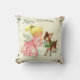 Travesseiro bonito de dois lados com a mesma design Feliz de Natal de ambos os lados. Um anjo adorável com asas está vestido de rosa e está alimentando um veado bebê. O veado tem uma coroa ao redor do pescoço. A imagem é vintage e está em um fundo colorido creme embelezado com estímulos retrorreflectores do século de Médio.