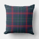 O design de travesseiro decorativo de Natal sazonal apresenta um padrão de xadrez de tartan escocês num esquema de cor vermelho, verde-caçador e azul-marinho.