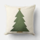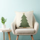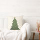 O travesseiro decorativo de Natal apresenta um simples design de árvore de Natal com uma aparência texturizada. A árvore tem um aspecto verde rústico, a madeira é marrom-kraft, e a estrela adiciona um toque de brilho com um aspecto reluzente de ouro. Um padrão de largas faixas de marfim verde e branco suave/claro e horizontal se encolhe na parte de trás do travesseiro.