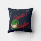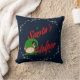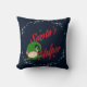 Papais noeis Helper Christmas Elf Whimsical marinho blue Holiday Travesseiro decorativo apresenta a tipografia do Auxiliar Papai noel vermelho com um elfo bonito vestido de verde, todos cercados em um anel de flocos de neve.