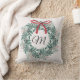 Christmas pillows featuring festive Christmas wreath with personalized initial.
