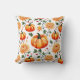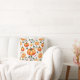 Pillow in a fall-themed pattern featuring vibrant orange pumpkins intertwined with blooming chrysanthemums in warm yellow and orange hues, creating a festive harvest-inspired design
