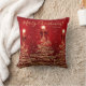 Elegant Merry Christmas / Happy Holidays "throw pillow" Gold Trees with bows on red.