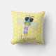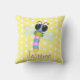 Esta libélula azul e rosa fofa é brilhante e colorida! Desenhado no estilo de desenho animado feliz em um fundo de bolinhas amarelo.
