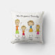O travesseiro decorativo americano de MOJO caracteriza uma figura bonito família da vara que consiste no pai, na mamã, no filho, e na filha com áreas que você pode adicionar seus nomes e nome de família.