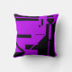 Sonolência e moda. Abstrato, geométrica, linhas e formas ousadas em roxo e preto brilhantes criam um design que é algo sugestivo de uma figura humana. A imagem é invertida horizontalmente em cada lado. No espírito do estilo Moderno do século Médio, esse é um olhar intenso e minimalista nas linhas simples e nos tons escuros. Há também um pouco de arte tribal, e até mesmo de uma esparsa pintura de abstrato moderna. O design projeta uma qualidade ricamente vibrante, artística e misteriosa para a área viva, quarto, espaço de trabalho, terraço ou decor de pátio, mas também oferece um sentimento de calor, uma ambição relaxada e pacífica para o seu espaço residencial pessoal, um lugar para recuar e contemplar enquanto está longe do mundo barulhento do dia a dia. Há muito potencial decorativo nesta peça de sotaque, que se ajustado com muitos estilos, de retrô/safra a rancho rústico a loft urbano moderno ou alta.