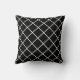 A arte deco inspirou travesseiro decorativo de monograma branco e preto para as finais. A parte de trás tem um preto com design de linhas.