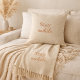 Dê as boas-vindas aos hóspedes com calor e hospitalidade usando esta almofada elegante "fique um pouco" em belos tons de areia quente. O design simples, mas convidativo, apresenta uma mistura perfeita de tipografia moderna sem serifa e cursiva fluida em terracota rica, criando uma estética sofisticada de casa de campo.