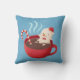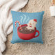 Adicione uma vibração de Natal com este travesseiro decorativo bonito em vermelho, branco e azul. A ilustração apresenta um bonitinho bonitinho que está tomando um mergulho relaxante na xícara de chocolate quente de cacau como se fosse uma banheira quente. Mas está derretendo como um marshmallow junto com a cana-doce.