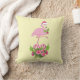 Um travesseiro com um flamingo de Natal tropical vestindo um chapéu de santa rosa. Debaixo dos pés está um buquê doce de cana com flores tropicais bonito e amoras rosa. Um punho de Holly no peito.