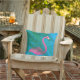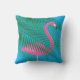 Estes divertimento e coxim exterior tropical são decorados com um flamingo cor-de-rosa fúcsia e folhas de palmeira em um fundo brilhante do céu azul, fazendo a lhe o acessório perfeito do verão para a casa de praia, a casa de campo, a pátio, a plataforma ou a área da piscina.