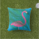 Almofada Flamingo & folhas de palmeira tropicais no azul -