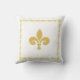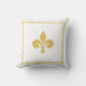 Almofada de Arremesso Fleur de Lis Dourada sobre Branco. Fleur de Lis representa realeza, virtude e harmonia.
