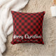 xadrez vermelha e negra rusticada do país com sotaque em flocos de neve personaliza o travesseiro de feriado.