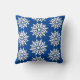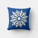 Floco de neve na moda com travesseiro decorativo de fundo azul. Do outro lado desse travesseiro, o moderno floco de neve está em um padrão.