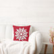 Floco de neve na moda com travesseiro decorativo de fundo vermelho. Do outro lado desse travesseiro, o moderno floco de neve está em um padrão.