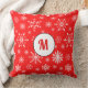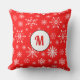 Um belo e monograma de flocos de neve vermelhos com padrão vermelho de presente, é um único Travesseiro decorativo de Natal para ele.