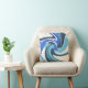 Em destaque está uma design de arte contemporânea, giratória, evocativa de uma imagem de abstrato e inspirada pelo estilo Moderno do século Médio, em formas curvas em azul brilhante e real, e cor esbranquiçada. Este é um padrão giratório, que projeta uma vibração elegante, artística e chica, suave e relaxada para a área viva, quarto, espaço de trabalho, terraço ou decor de pátio, oferecendo um sentimento de calor e tranquilidade. Há muito potencial decorador nesta peça de sotaque, que se ajustado em vários estilos (inovadores ao tradicionais), desde retrô/safra até fazenda moderna ao estilo rústico de hacienda a loft urbano e alta ascensão.