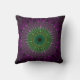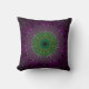 Este travesseiro decorativo colorido irradia de um centro verde para um exterior roxo como uma flor abrindo para miçangas de luz. Um design intrincado e abstrato que tem um efeito de ilusão vítreo.