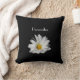 Uma fotografia de uma margarida branca elegante com um centro amarelo contra um fundo preto puro. Personalize adicionando seu nome.