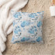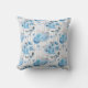 Almofada Floral Azul de Cores Aquáticas com faixas de Cinza