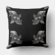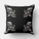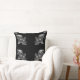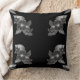 Este trabalho de arte apresenta um padrão repetido de designs florais em tons de cinza contra um fundo preto profundo, criando um travesseiro decorativo vibrante e elegante.