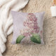 Bonito vegetação lilás rosa-rosa em um travesseiro lilás pálido. Um design floral em tons cor-de-rosa e verde, com uma textura adicionada para dar um estilo de país chique ao design. Este travesseiro seria bonito em quartos, salas ou salas de verão.