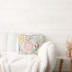 Design floral moderno rosa, azul e amarelo em uma almofada