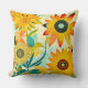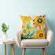 Travesseiro decorativo de flores de arte folclórica amarela e turquesa
