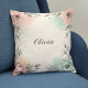 Este travesseiro decorativo personalizado apresenta flores rascunhadas e encantadoras em cantos com texturas aquáticas moles, cor-de-rosa-pincel e verde-menta.