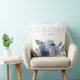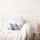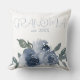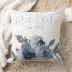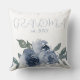 Este travesseiro personalizado apresenta um tema floral saudável. Um buquê de flores azuis de aquarela é colocado no fundo. O título da vovó é impresso em letra escrita manuscrita com o ano estabelecido.