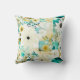 Almofada Flores bonito de Arte Folclórica Branca e Turquesa