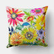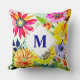Bonito rosa, amarelo e púrpura aquarela flores de ai art travesseiro decorativo floral. Adicionar inicial na área personalizada.