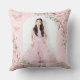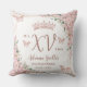 Personalize este elegante travesseiro de aniversário de Quinceañera / Sweet 16 cor de rosa floral de forma fácil e rápida. Basta clicar no botão Editar Usando Ferramentas de Design para editar ainda mais os textos, alterar as fontes e as cores das fontes. Apresenta belas flores de cerejeira em aquarela, borboletas em rosa dourado e uma moldura geométrica em rosa dourado. Adicione a fotografia da sua quinceanera no verso do travesseiro. Isso torna um presente perfeito para quinceanera, sweet sixteen, aniversário de 18 anos, baile de debutante e muitas outras ocasiões! Itens correspondentes disponíveis na loja. (c) Somerset Fine Paperie