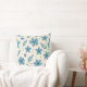 O design apresenta um padrão floral azul-primavera, visualmente atraente, sobre um fundo creme, com um design de várias flores e folhas repetidas numa matiz azul-suave. Os pontos são consistentes em tamanho e cor, proporcionando uma sensação de continuidade em todo o design. Impressão geral: este travesseiro expele uma sensação de serenidade e serenidade, obrigados à paleta de cores suaves