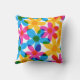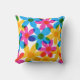 Adicione um toque brilhante ao seu sofá com este travesseiro padronizado. Ele tem um estilo retrô com flores hippie margaridas sobrepostas em amarelo brilhante, azul e magenta cor-de-rosa. Os gráficos desenhados à mão são projetados para imitar a impressão clássica do estilo risógrafo