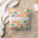 Pense em primavera com este travesseiro decorativo de padrão de azulejo quadrado giro arredondado em turquesa, coral e amarelo, decorado com corações bonitos e flores retrorreflectoras bonito. Personalize este design de modelo retrô adicionando o nome de uma adolescente.