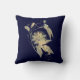 Almofada Flores Douradas Elegantes no Floral Azul Marinho