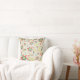 Flores de poinsettia estilizadas foram reimaginadas em vermelho, verde e ouro. Foram rodeados de folhas e bagas sagradas com cores douradas, verdes e marrons. As faixas do lado oposto do travesseiro estão nas mesmas cores que as da frente.