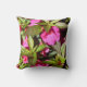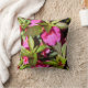 Almofada com flores rosa-quente contra folhas brilhantes verdes profundas. A foto mostra flores de lagzie, rosa e ocupada. Obrigados para ver as minhas designs!