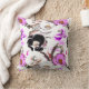 Almofada Flores roxas, brancas e pretas.