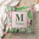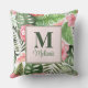 Almofada Flores Tropicais Rosa e Monograma Monstera