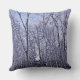 Esta foto gráfica digitalizada, de uma floresta nua e arborizada, é exibida em mudas, tons de violeta, roxo, azul, branco, cinzas e pretos, nos vestígios persistentes, de um crepúsculo azul pálido.