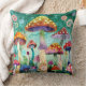 Uma floresta vibrante de cogumelos brancos e multicoloridos se ergue contra um pano de fundo verde girando. A cena é pontilhada por fungos de vários tamanhos, cada um amontoado com alças e cercado por delicados elementos florais.