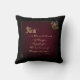 A palavra Faith é feita com letras decoradas, metálicas, de aparência ouro, assentadas sobre um fundo claro de vinho escuro, colorido, com um belo ouro de borda colorida e decorada. Personalizável no verso, a frase "Fé é a substância das coisas esperadas, a evidência das coisas não vistas." (Hebraicos 11:1) Nota: Esta design funciona apenas nos travesseiros quadrados, não nos retangulares.