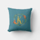 almofada monofórica floral com uma coroa floral e um guião fofo inicial manuscrito. Almofada de excelente para o seu interior. Personalizar selecionando a cor de fundo