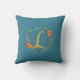 almofada monofórica floral com uma coroa floral e um guião fofo inicial manuscrito. Almofada de excelente para o seu interior. Personalizar selecionando a cor de fundo