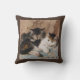 Bonito imagem de arte vintage de dois gatinhos, uma cinza e um calico, abafados e dormindo no chão. Um lindo presente de trabalho de arte para o amante de gatos e pinturas. As cores incluem branco, castanho e castanho.
